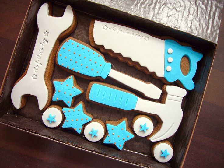 Unas decoraciones que hacen mucha ilusión son las enfocadas a sus aficiones: si le gusta el fútbol, ¿qué mejor que unas galletas de su equipo o jugador favorito? O si practica algún deporte, como el golf, montar en bici… También podemos imitar su modelo de coche o moto y tratar de plsmarlo en la galleta. O buscar otras aficiones, como hacer las «chapuzas» de la casa con su caja de herramientas: