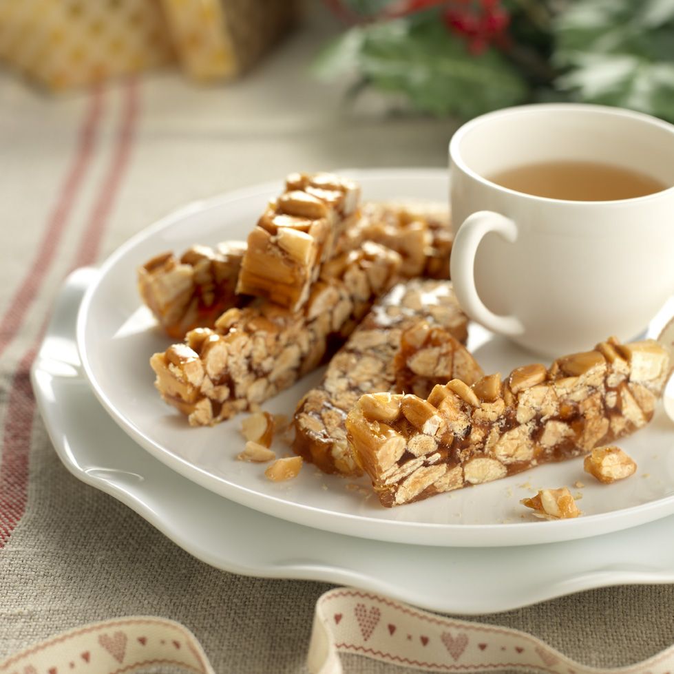 El guirlache es un dulce navideño de almendras y caramelo típico de, Aragón, Cataluña y la Comunidad Valenciana.
