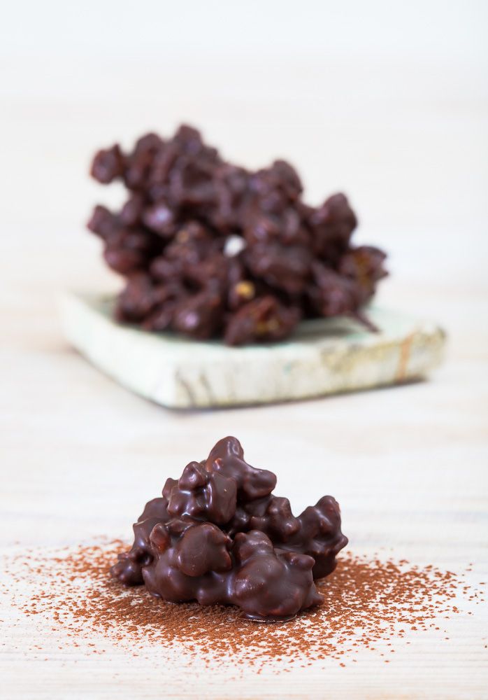 En el momento de servir tus rocas de chocolate te proponemos espolvorearlas con cacao amargo ya que le aporta un gusto aterciopelado muy rico.